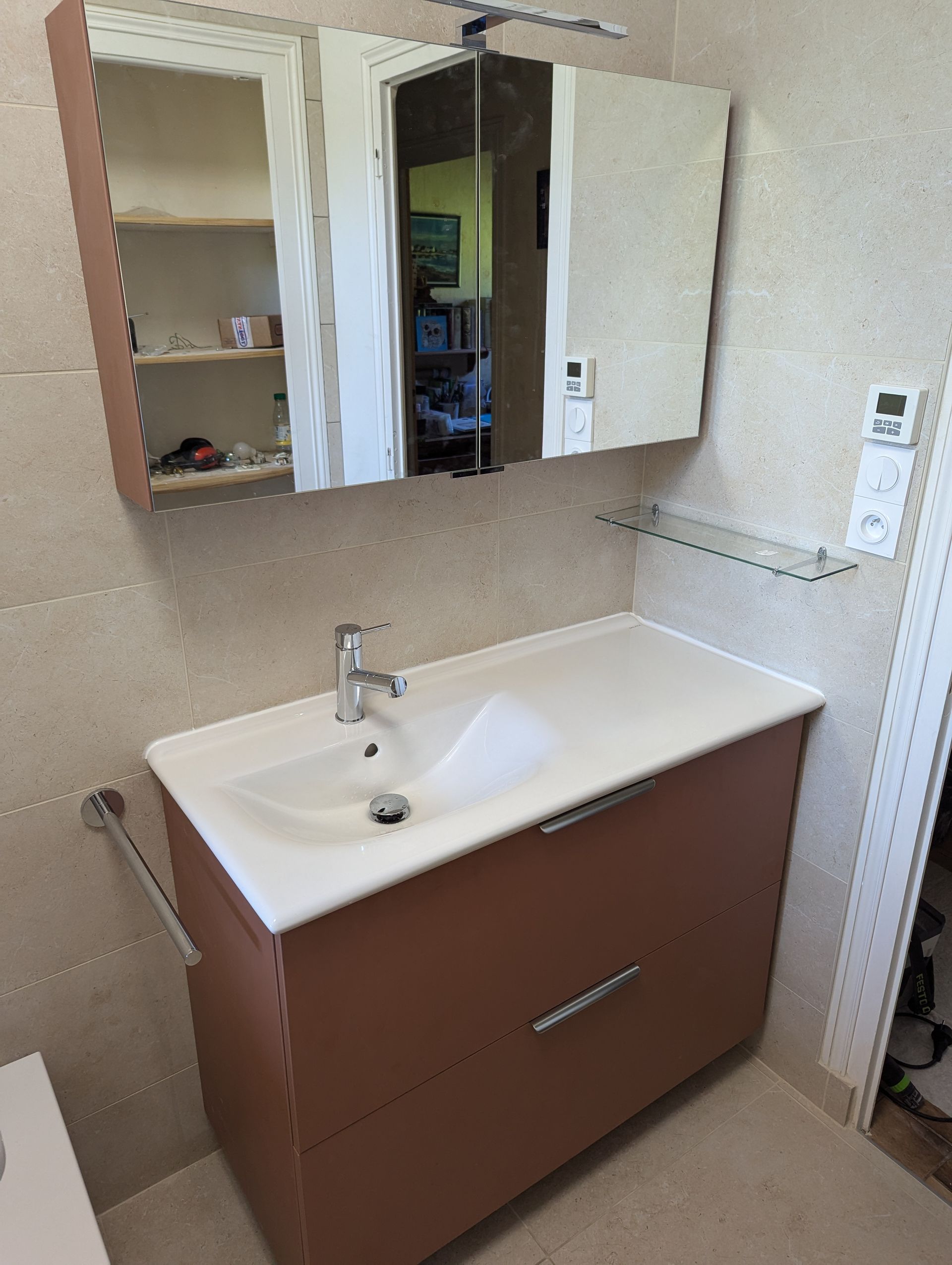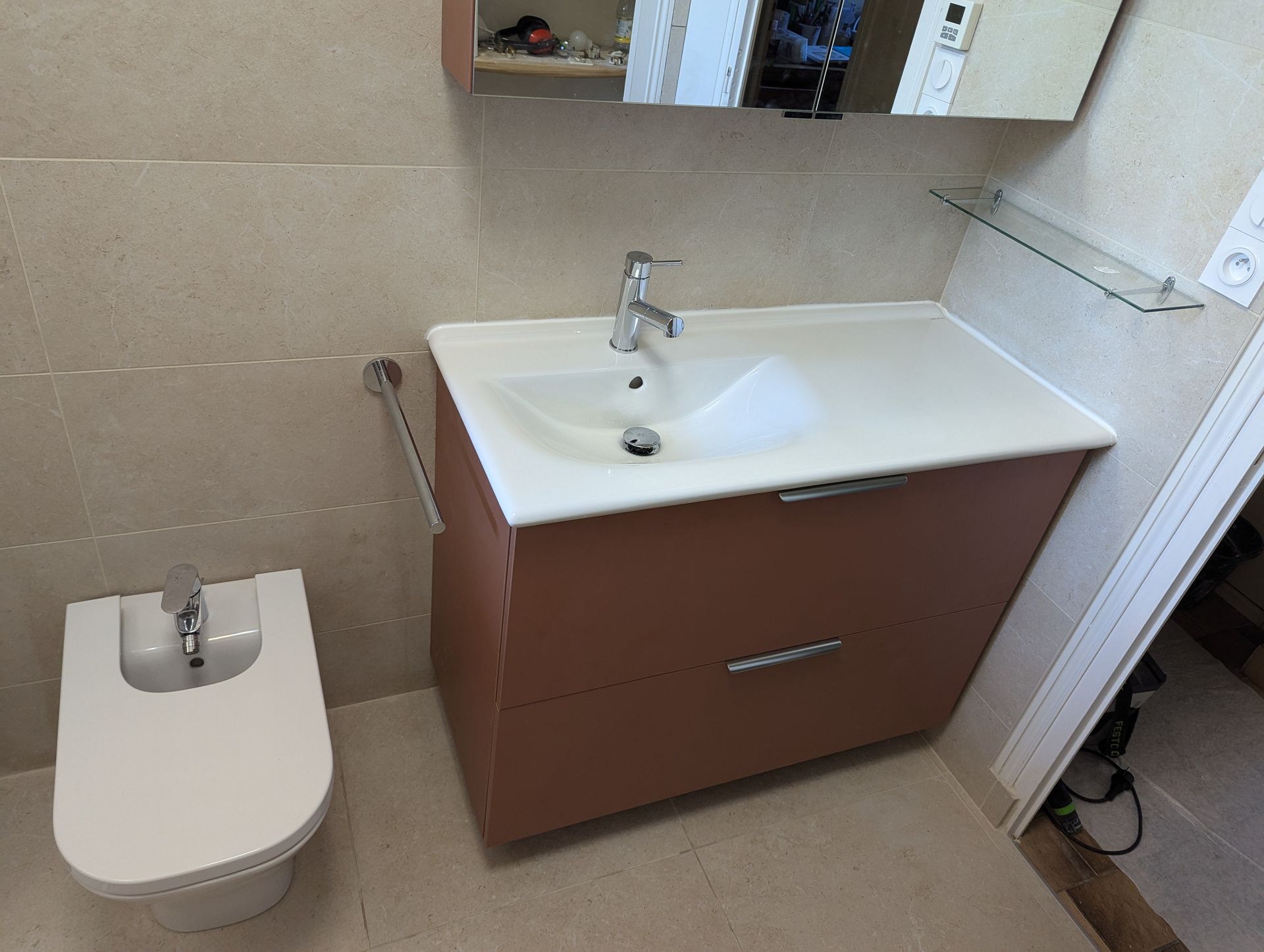 - pose des meubles, paroi de douche, receveur de douche, robinetterie